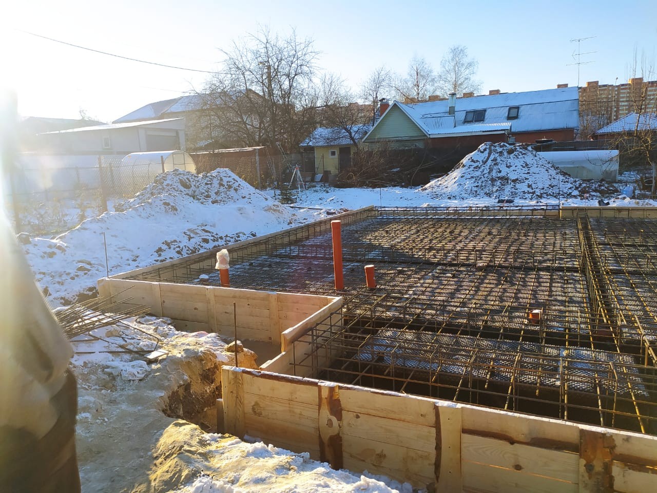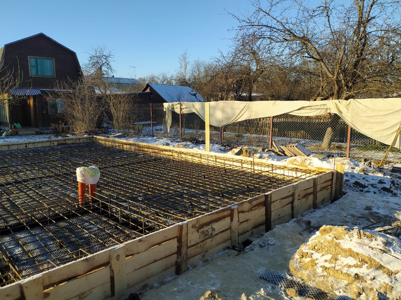 - Устройство ленточно-монолитного фундамента с утеплителем;