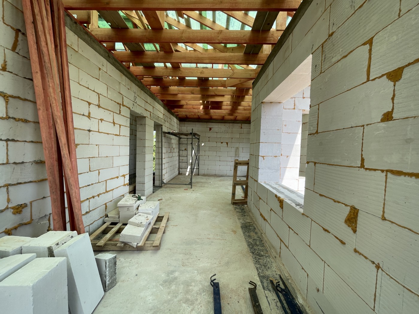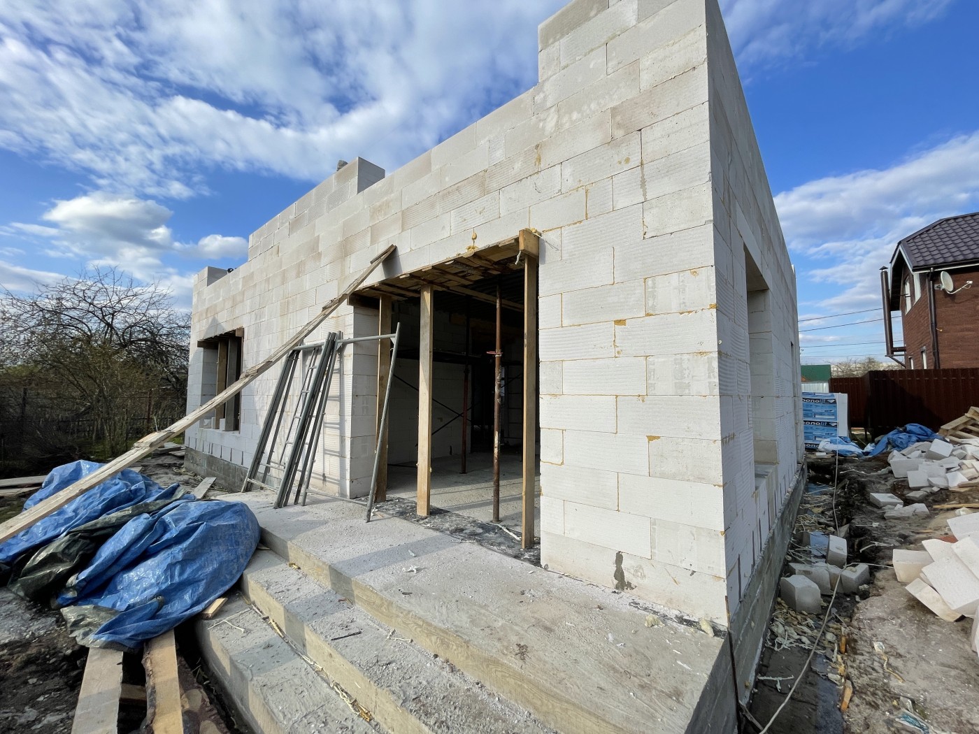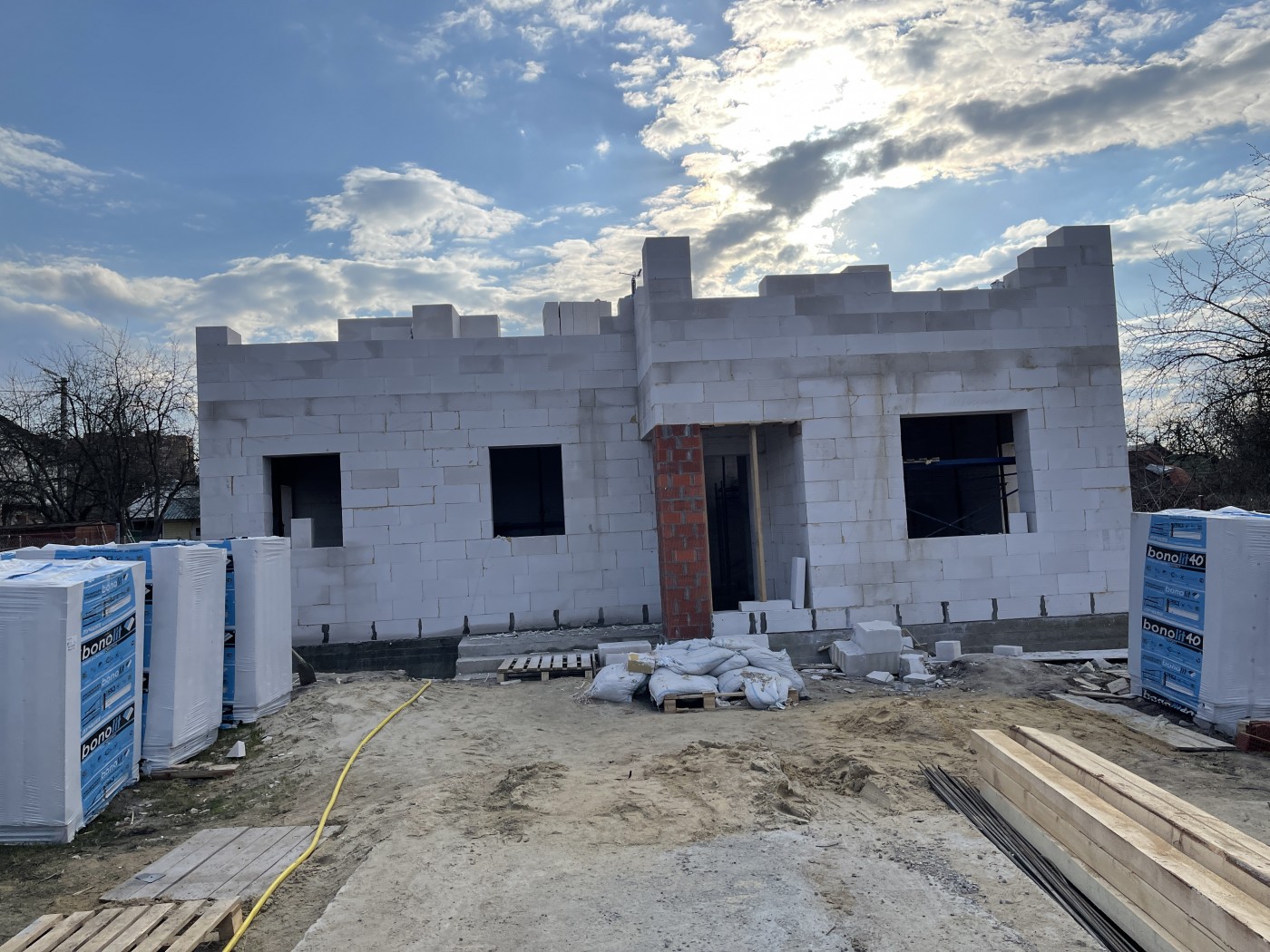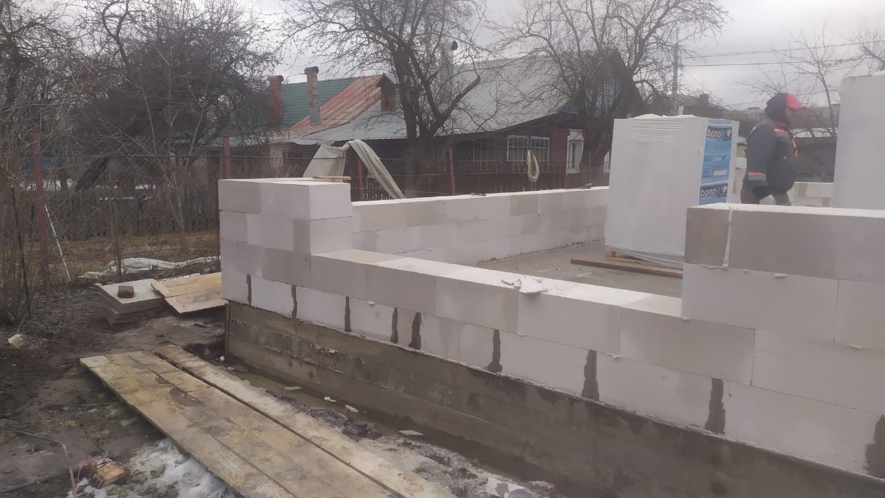 - Возведение силового каркаса дома из газосиликатных блоков 400мм;
